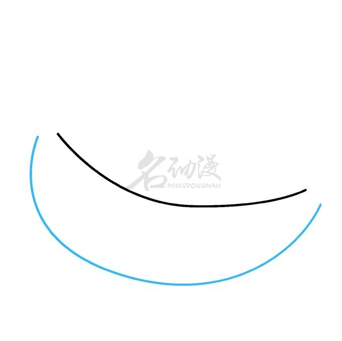 第二步:在第一步的基础上,将香蕉想象成是一个月牙的形状,然后一笔画出香蕉的底部,注意不要将两端的缺口封死了,接下来还要画出香蕉蒂。