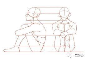 虽然是坐姿的画法,但想要画好的话,还是要先从体块的定位开始,当人蹲坐下来的时候,如果后面没有倚靠的物品,为了确保中心的稳定,上半身会带有一定的弧度。
