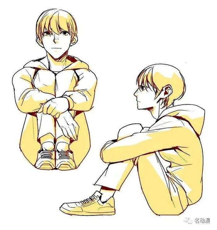 当然这种坐姿也不仅仅限于可爱的女生,在描绘一些比较柔弱的小哥哥的时候,如果采用这样的坐姿,有的时候也会有奇效噢!