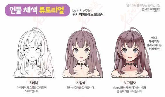 ①第一步,当然是线稿,那么我们先画出一个少女头部的线稿,注意卡好闭塞线稿的重色部分。线稿要注意好区分前后的头发,要具有层次感。