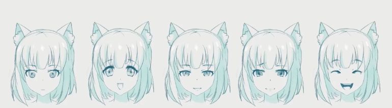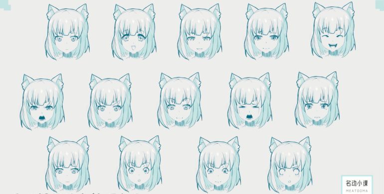 (4)总之,不管是喜怒哀乐还是其他表情,所有表情都是互通的。当我们自己在设计表情的同时,要注意到,其他部位会不会随之变动。并且,不管什么表情,眉毛都在变化,鼻子的变化最少,这是日漫人物的特征。