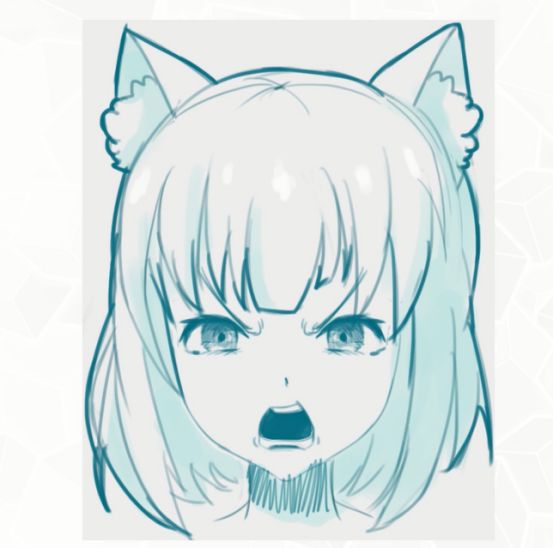 (3)愤怒的表情。在面无表情中,将眉毛改为向上。八字眉,看起来表情难受。哭的表情和愤怒的表情,恐惧和惊讶等都有很多想通过之处。