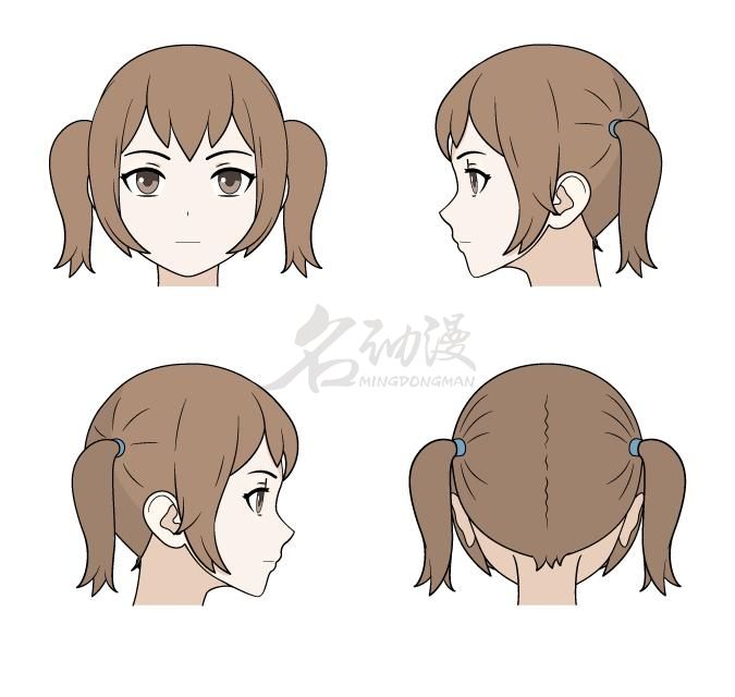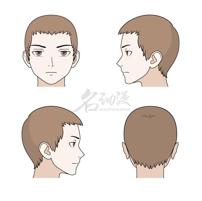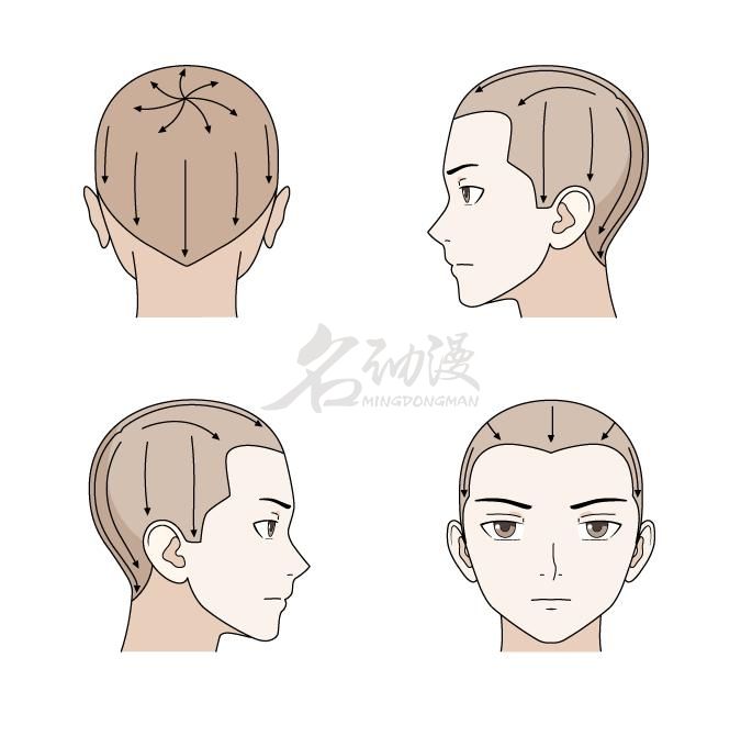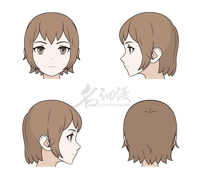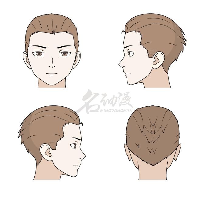 要画出这样的短长发,可以将头发画成更大的团块。比较长的头发,除了侧面的顶部和背部头发之外,可以将鬓角视为单独的部分。
