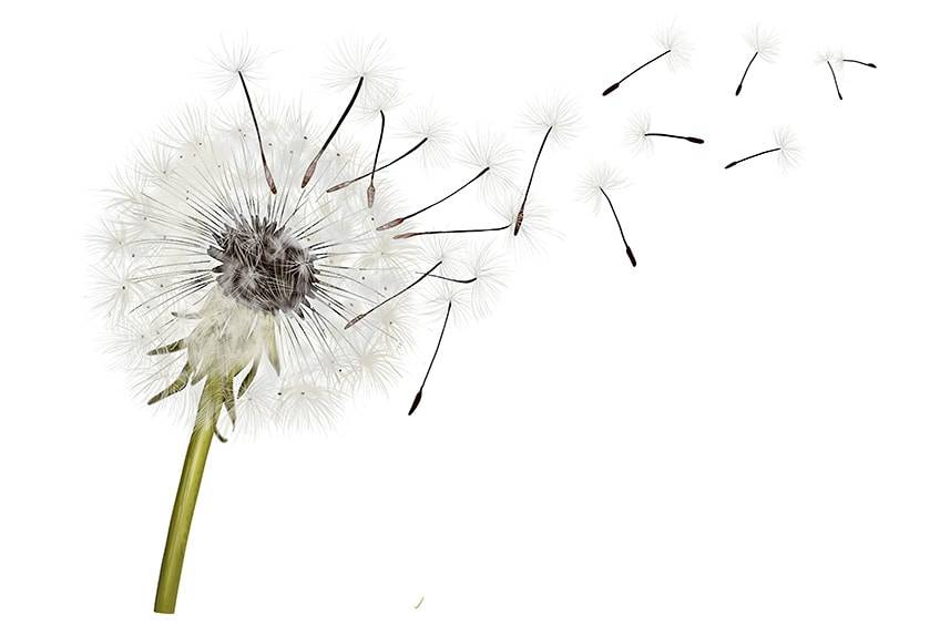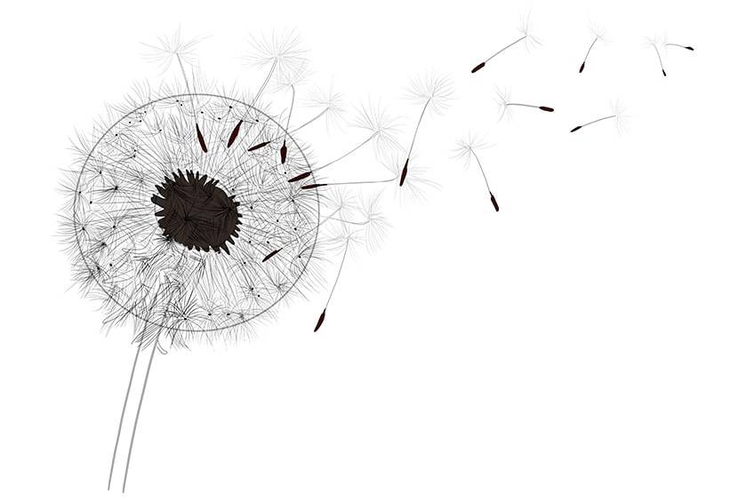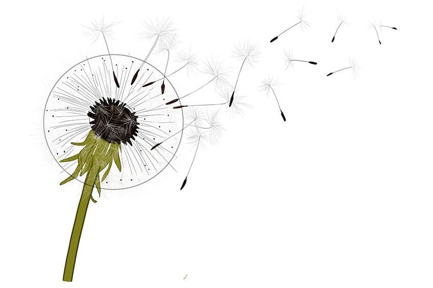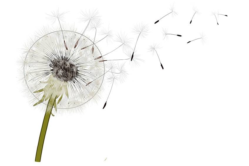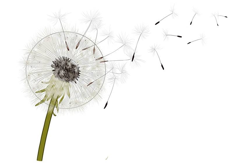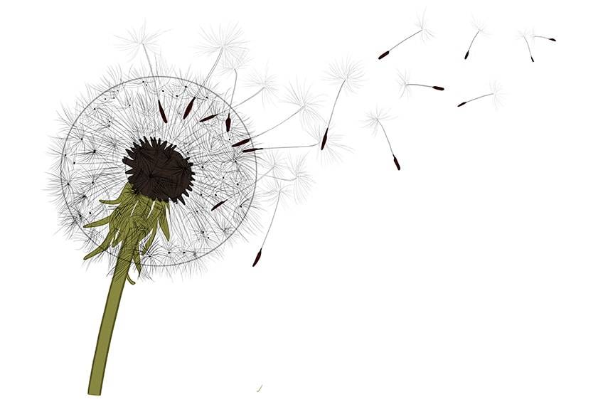 提示:随着种子离蒲公英主图的距离越来越远,它们的尺寸应该要画出越来越小的效果。