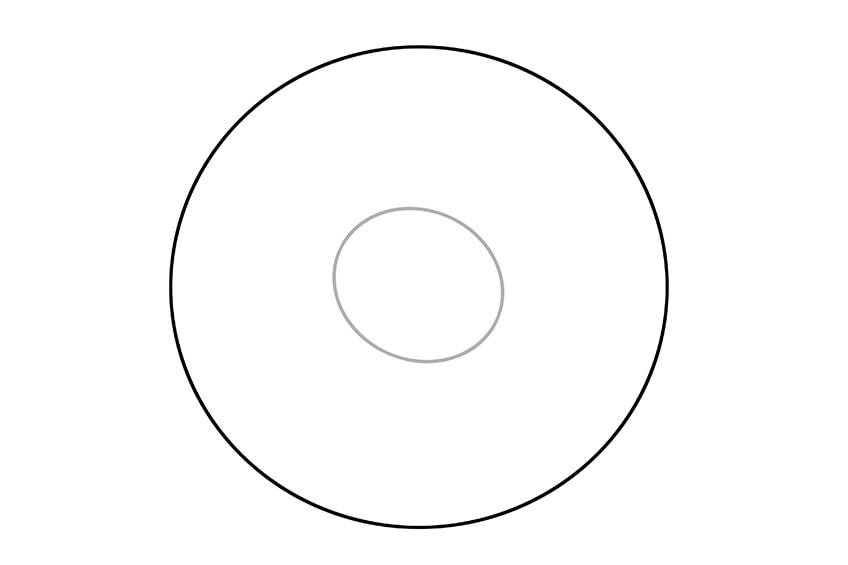 我们开始我们的蒲公英素描,画一个单一的椭圆结构步骤。找到你画布的中心,画一个小的椭圆形,向右微微倾斜。对于这些第一个构造步骤,我们建议你使用易于擦除的轻质铅笔,如6H铅笔。