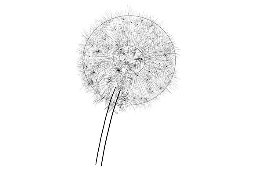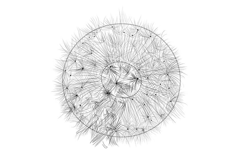 用很细的画笔,描画你的蒲公英种子的每一条线。