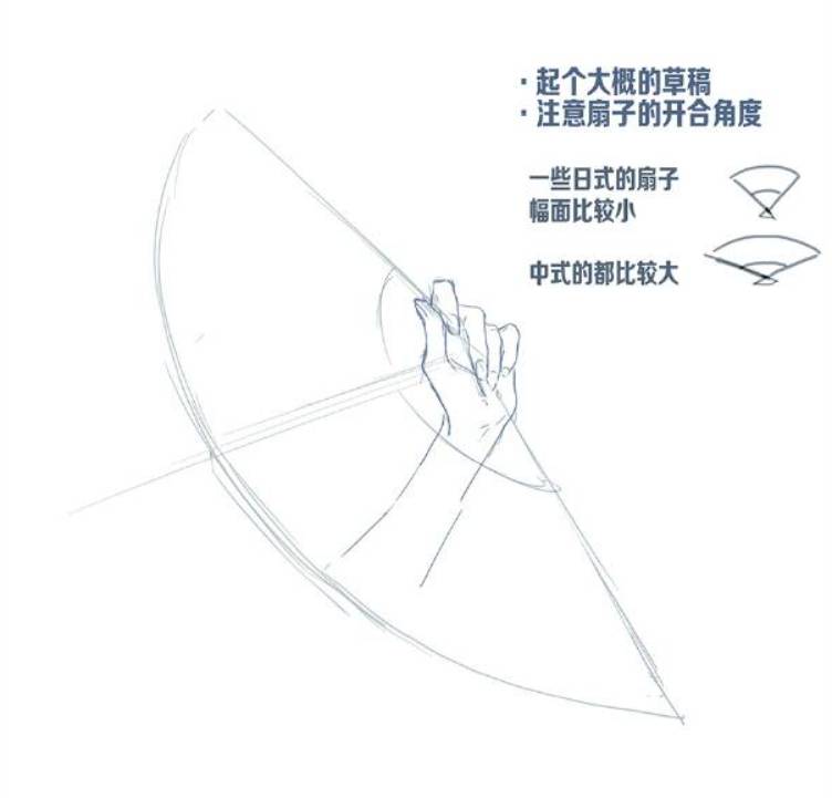 1、大家先起个大概的草稿,注意扇子的开合角度。有些扇子比较小,有些扇子比较大的。