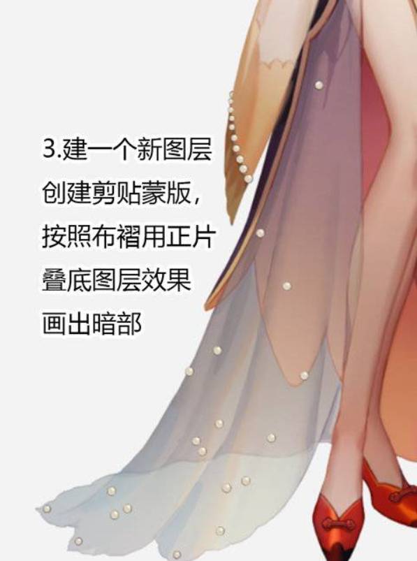 3、建一个新的图层,创建剪切蒙版。按照布褶皱用正片叠底画出暗部。