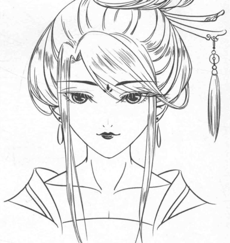 古风女性的五官柔和婉约,用笔要轻,线条较细致柔软且多为弧线。