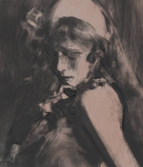 02、画结构。将画面中所有较暗的部分调子全部画出来,并顺便带出人物的结构。