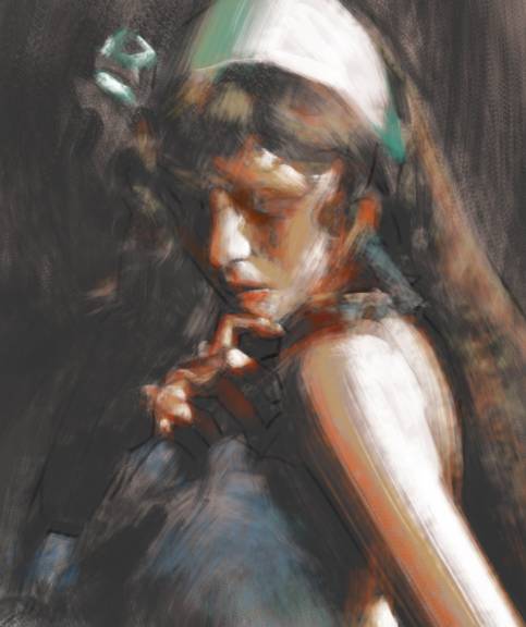 06、整理转折面。经过上面五个步骤,画面所有的调子就全部铺完了,剩下就是整理一下人物的结构转面就可以了。塑造方式和素描一样。