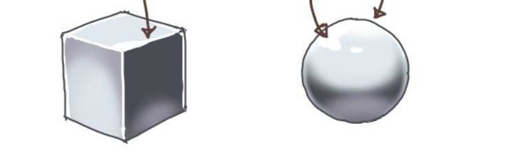 描绘出反光。光线不只来自光源,由于从地面等处的光线也会有反射,所以阴影的下部分要稍稍亮一些。