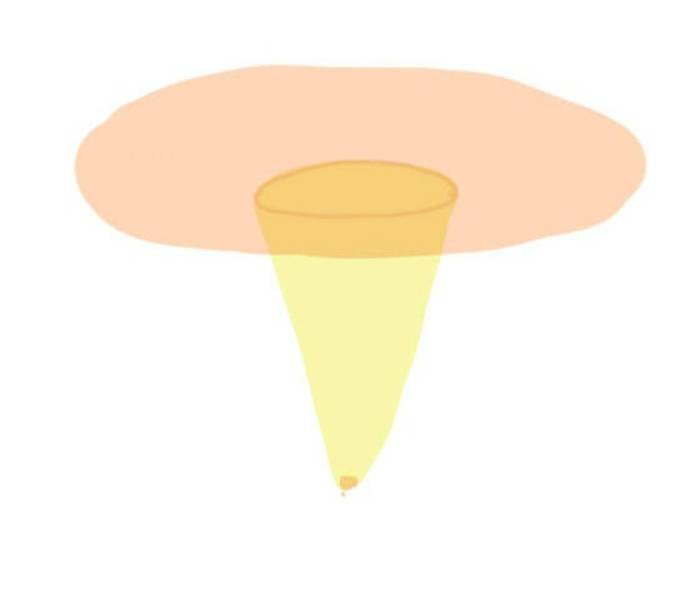 这一步大家用适当的角度进行绘画分割,来决定花瓣的角度。也许分割成7~8个部分会更加容易进行操作。大家还要记住花瓣的部分平缓上翘,牵牛花从花托朝向,花瓣的角度很大。