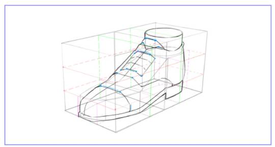 我们从鞋底开始画鞋的体积,因为我们已经标注好了比例线,所以非常方便我们计算节点。