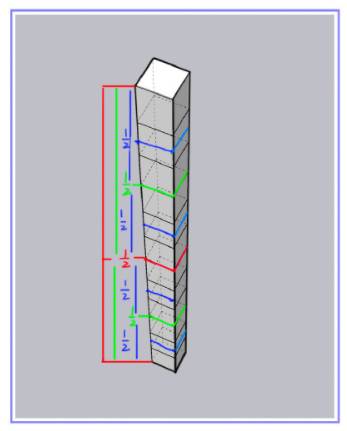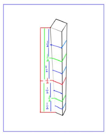 我们也可以从二分发快速分割空间中等距线段,先用红色快速将上下端二等分。然后用绿色将上半部分二等分和下半部分二等分,以此类推,空间分割最好是用偶数进行分割。