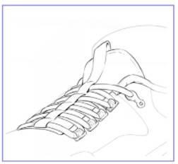 蓝色标注了空间节点,左右节点对上透视线;弧线分段画,不要纯弧形,这样不好对透视线;鞋带不要画成平行的。