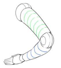 红色代表上半弧,绿色代表下半弧。