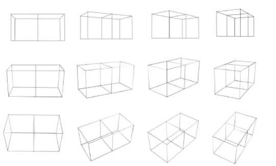3D软件也是一样的,不同的是3D软件的消失点比较固定且距离较远,所以变形程度没有手绘的那么夸张。