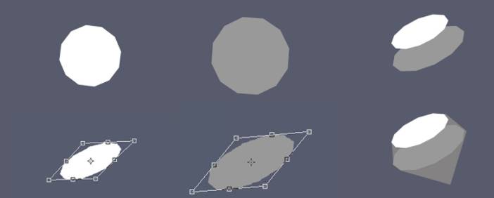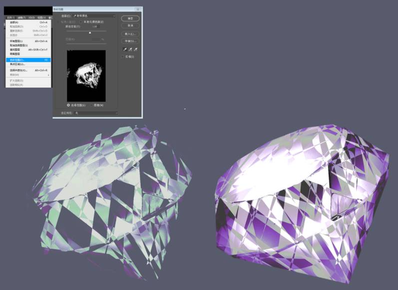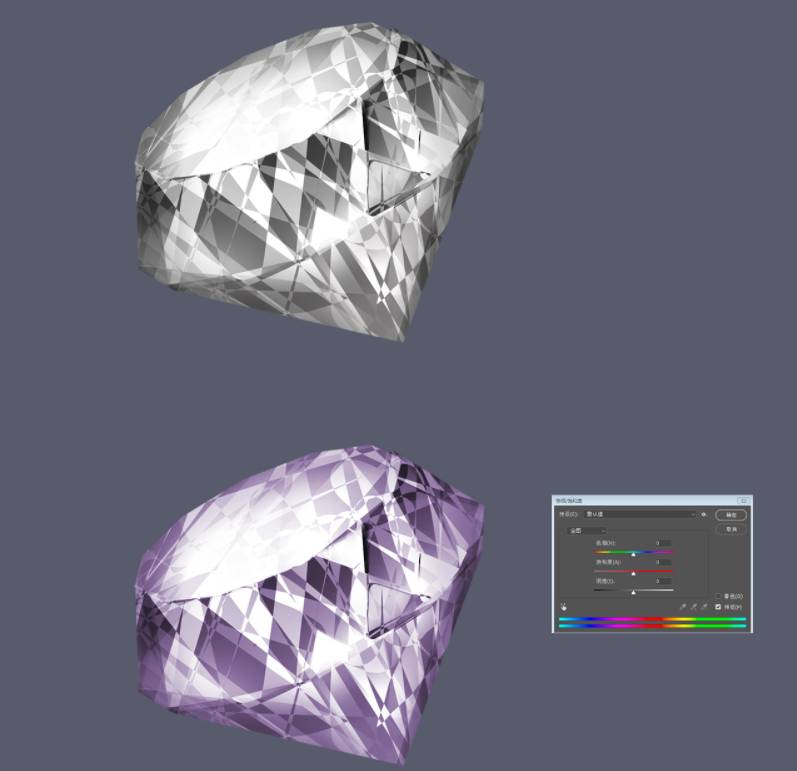 以钻石为例,可以使用多边形工具与选区工具快速塑造立体形状。