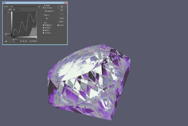 使用色彩范围选择亮灰面,复制一层,用曲线多峰值的方式调整出一些小颜色。(跟做镭射材质一样)