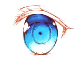 瞳孔及周边区域的高光,还是使用硬边的线条刻画。最后,在眼白区域绘制柔和的阴影。