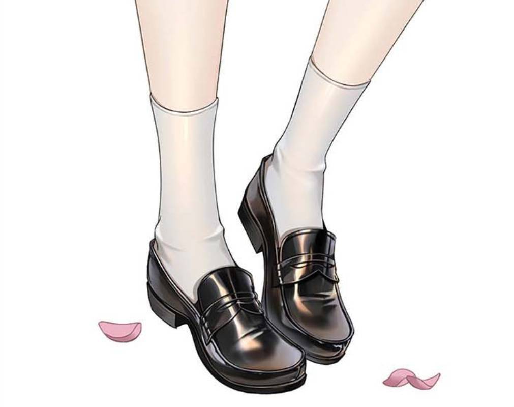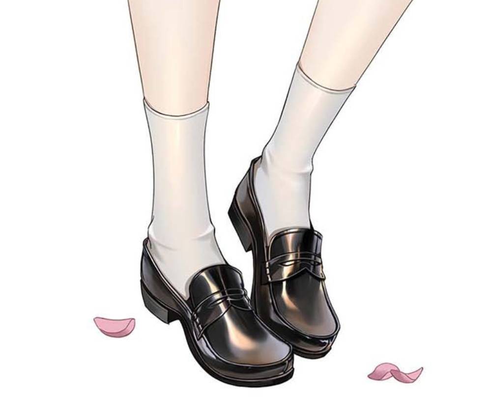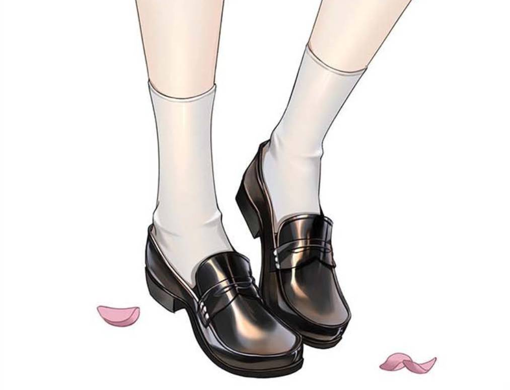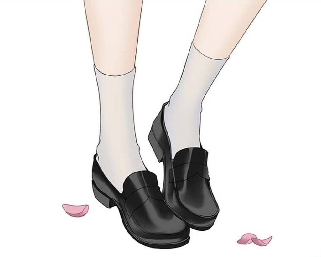 选择了一个在画立绘时最普遍的四分之三侧的角度,把线稿勾勒出来。在画线稿的过程中,可以先将脚的型勾勒出来,然后再穿鞋,这样就会避免鞋没有穿在脚上的问题。这一步注意在画的过程中可以先从剪影和基础几何形出发,从大的型去做,再根据参考图把鞋的裁剪和设计补全。