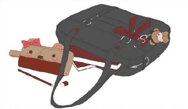 然后注意把缺的金属补上:例如蝴蝶结的链接、包和笔袋的拉锁。