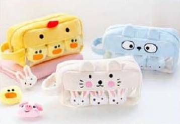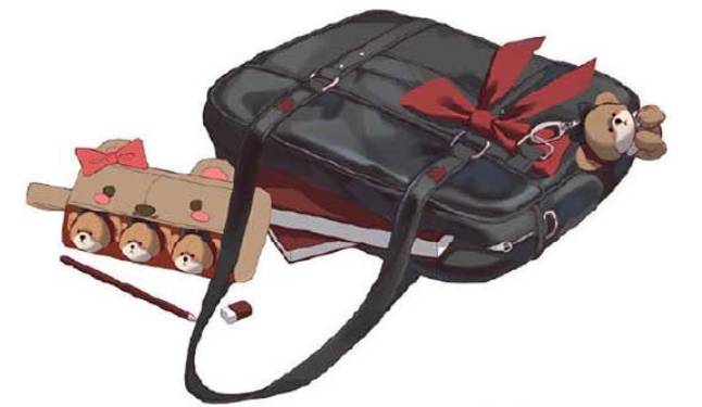 这一步勾线就需要把型都具体化了,之后的型基本上只会微调不会大动了,然后在勾线的时候发现笔袋的型可以更复杂材质更丰富一点,还是要先去找参考图不要凭空去想象~这里找的参考图如左图,准备和书包上的小熊做个呼应,做一个熊熊笔袋。