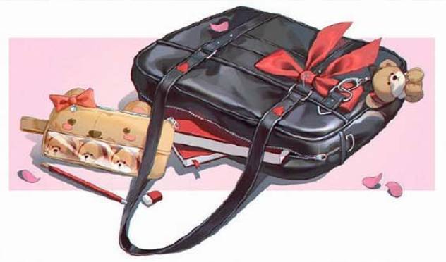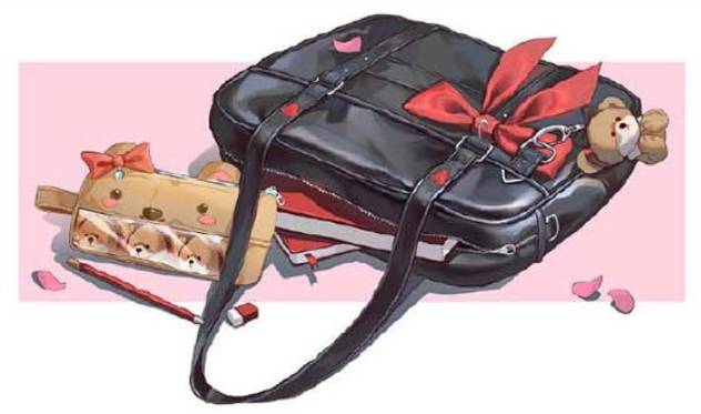 我们先来确定一个草稿,单独画一个书包稍微有一点单调。这里增加了一些文具书本,以及小的挂饰,草稿可以不用太细,就把大概的位置以及想法确定下来就可以了。