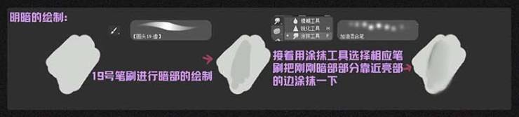 然后就是在上一步的基础上增加体积了,增加体积的方法其实就是把每个部分都上明暗,特别是翼膜的部分,要记得我们上面说过把翼膜当成皮质布料来画,所以在绘制时是可以通过明暗来表现类似的褶皱的,具体方法是在需要画褶皱的位置吸下暗部的颜色,用19号笔刷涂一笔,再吸一下亮部的颜色在原来的笔触上方涂一笔这样很容易就能出这种类似的效果了。