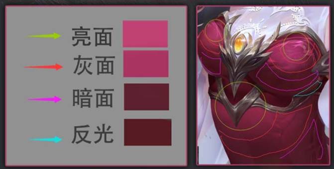 衣服上褶皱起伏比较明显,褶皱的调子数量越多,胸口中间这块的褶皱比其他地方加多了一个投影与闭塞。