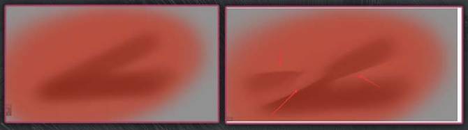 咱们先大致的试试两种笔刷的结合效果找找感觉,第一张是喷枪喷出布料暗部形状的效果,第二张是用19号切出褶皱形状。(箭头指的都是19号笔刷t切出来的效果)