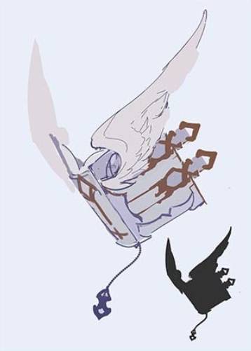 初步的想法是要画一本并不是太常见的魔法书,所以在剪影上为了避免方方正正的,就加了一个翅膀的元素,使整体剪影有一些变化。