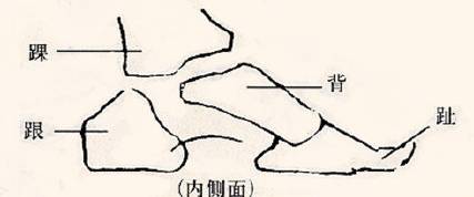 那么由此我们可以总结一下整个脚的组成部分以及形状:像扳手一样的脚踝卡在拱桥形的脚背上,下接舞台阶梯一样的四趾和大拇趾。后坐脚跟上。