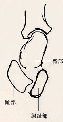 脚背的结构可以大致分为三部分:背部,大脚趾和其他四趾。大脚趾趾骨较为粗壮,分为一个独立的个体,其他四趾较为纤细,可以归拢为一个整体。