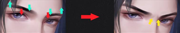 在原本无表情的基础上,让眉头下压,眉峰提高,眼睛的上眼皮也要再平一些,眉眼距离近一些,眉头微微皱起,表现不耐烦的情绪。愤怒时眼睛会瞪大,但是瞪大就容易崩表情,可以让眼睛眯起来,给人一种冷静审视和谋划复仇的感觉。