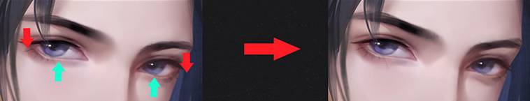 哀伤这个表情非常容易感染画面整体的氛围,在画的时候,可以用强光模式在内、外眼角眼白的部分加一些红在里面。有一种眼睛红了的感觉,与此同时可以搭配一些泪光在眼睛里,情绪会更容易被表达出来。