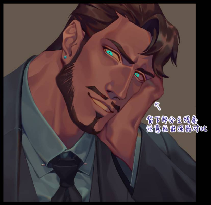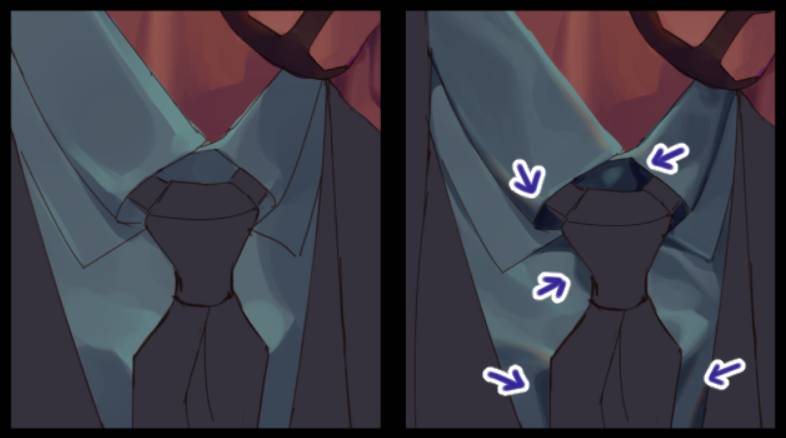 领带后方的凹陷处的缝隙阴影也画出来的话感觉很愉悦。(个人喜好)