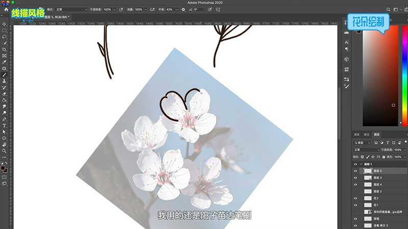 PS线描森系插画绘画养成自学视频教程,附带素材。