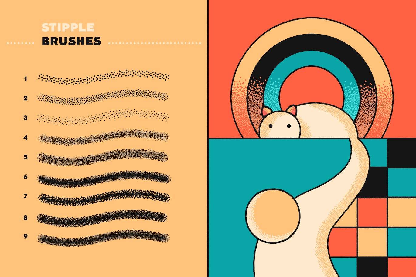 Procreate波纹笔刷包下载。欢迎大家使用这18个Procreate笔刷来画出你的第一幅插画作品,这些笔刷附带一些怀旧的效果。有9种笔刷类型,每一种都有两种风格:笔触笔刷和纹饰笔刷,都充满了复古的气息。使用这些画笔,你可以轻松为物体添加纹理和体积,并画出好看的光影。