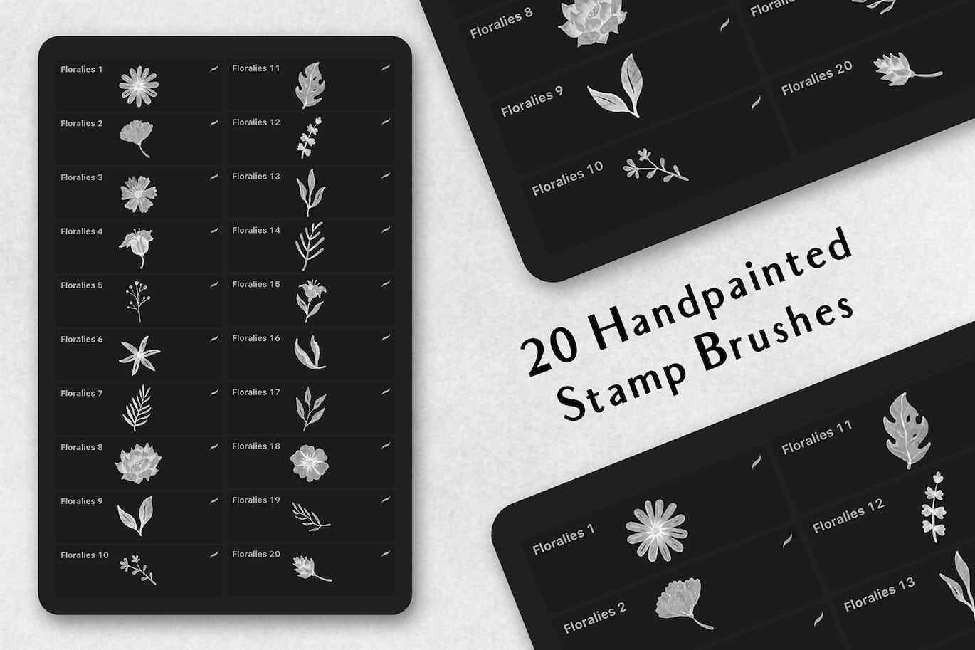 手绘风格的花草叶子Procreate笔刷套装下载。绘创之梦笔刷包里面包含很多好用的笔刷资源,你可以非常方便将这些笔刷应用到你的插画作品之中。