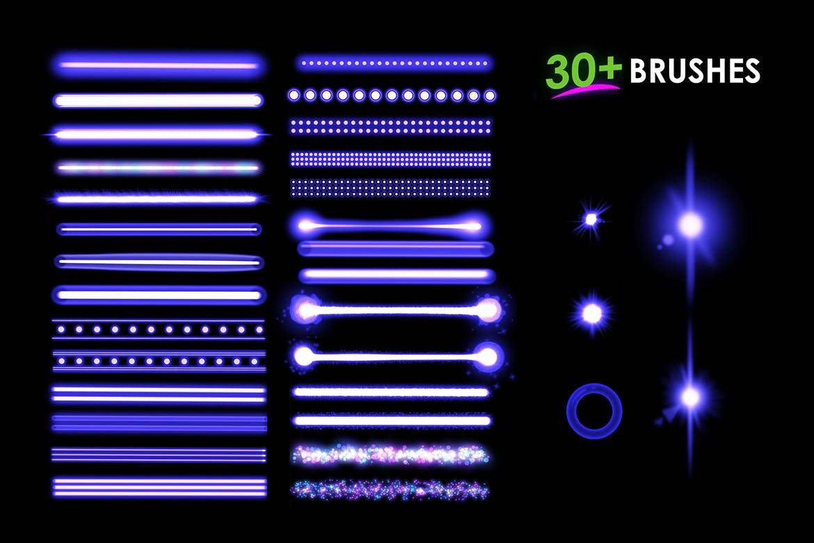 霓虹灯Procreate笔刷包下载,30多个笔刷资源,还包含色块/调色板哦。