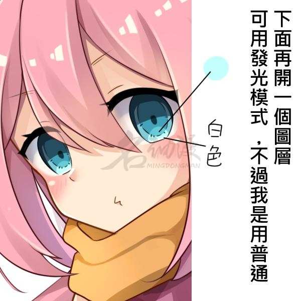 再次新建图层,给眼睛下方的位置加入亮色调。可以选择一个比虹膜色彩更亮的颜色。