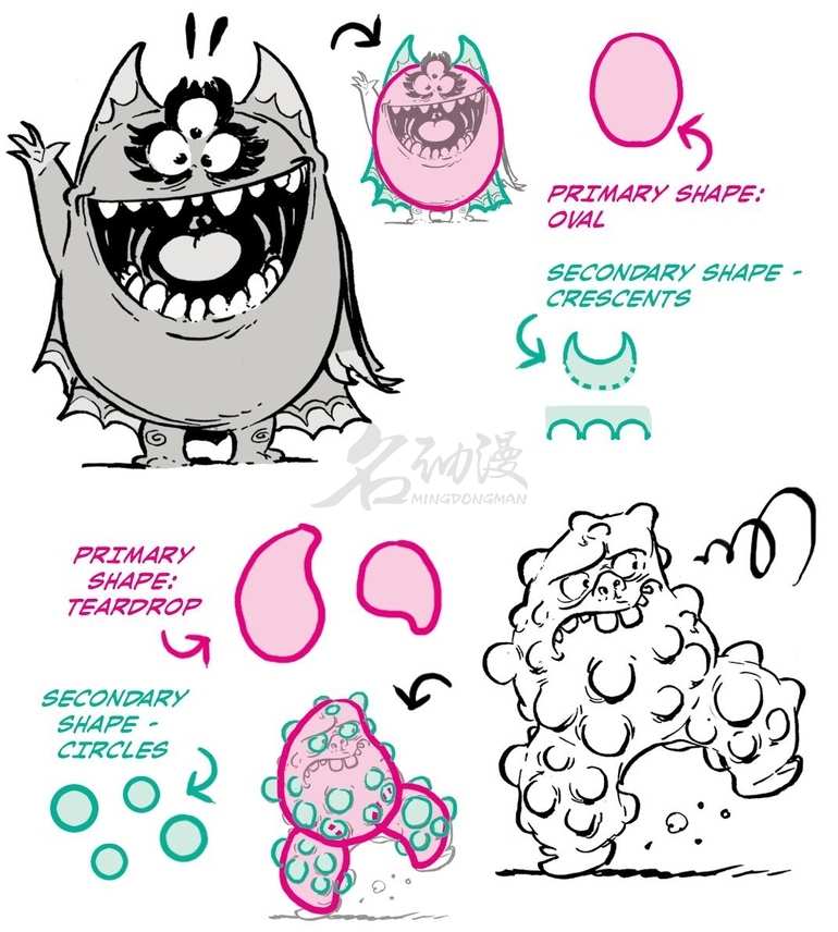 比如下面这个圆滚滚的怪物,主要形状无疑是一个球,那么我们的设计重点就要放在这个球上面。