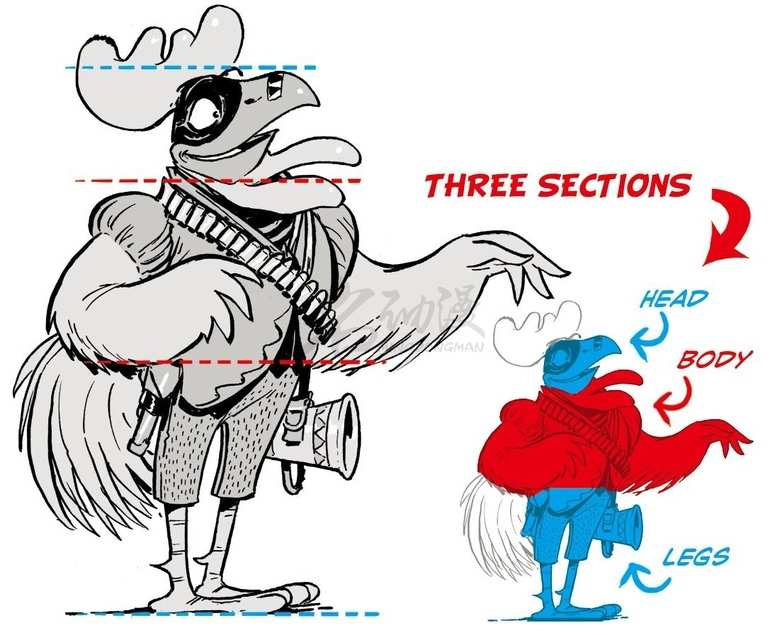 (7) “三分法”其实是非常有效的,我们可以采用这种方法创作出很多稀奇古怪的角色。如果对于你来说比较难以接受的话,不妨可以试试“机器人化”。