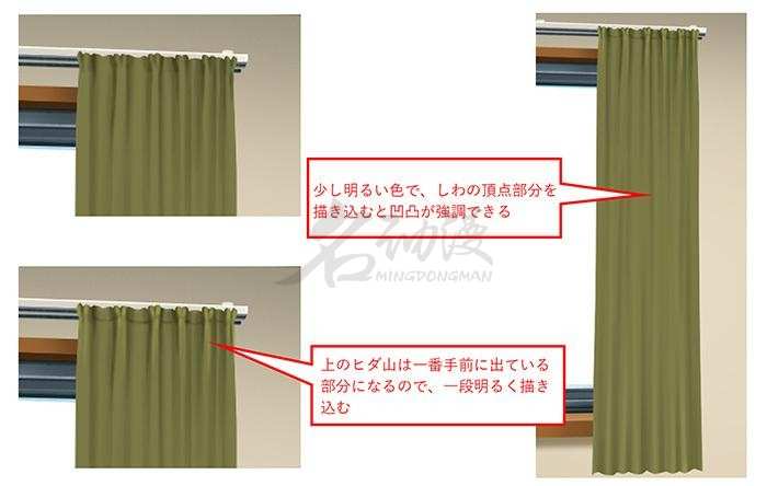 窗帘的褶皱整体是从上往下拉的,我们用笔也要注意遵循这一点规律。