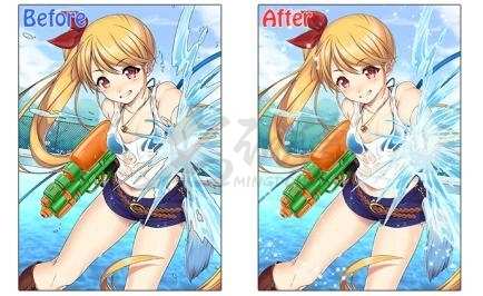尤其是水花和头发的效果,因为我们在处理轮廓的时候没有考虑到物体应有的材质,结果就感觉很硬。