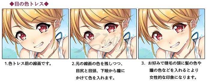 (2)眼睛位置也要有符合虹膜的线稿(偏红)