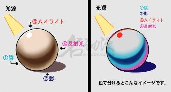 一般说来阴的色彩偏亮一些,面积很大。而影色彩要暗很多,面积则偏小。