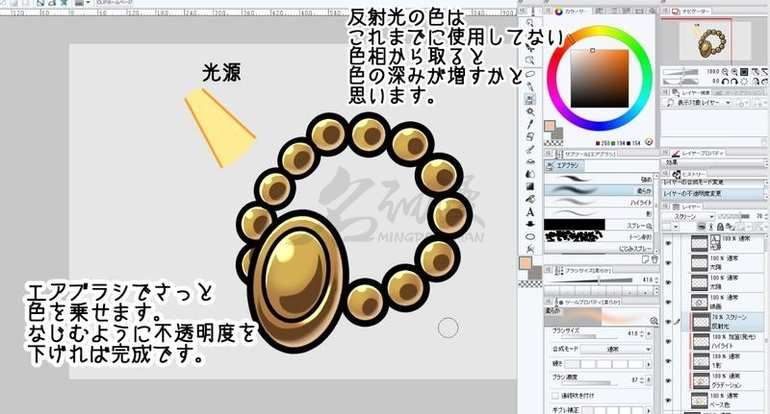 开始作画之前确定光源和照射方向是很关键的。事实上不只是画金属,我们画其他物体的时候也要注意这一点。
